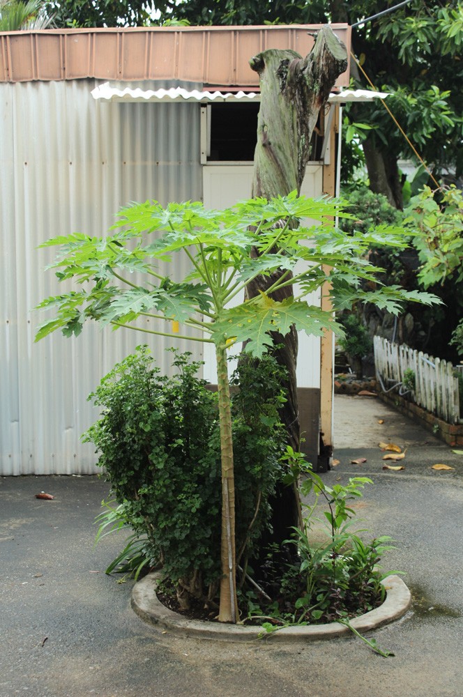 I walked to the back yard, saw a young papaya tree waved and said hello to me.