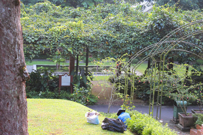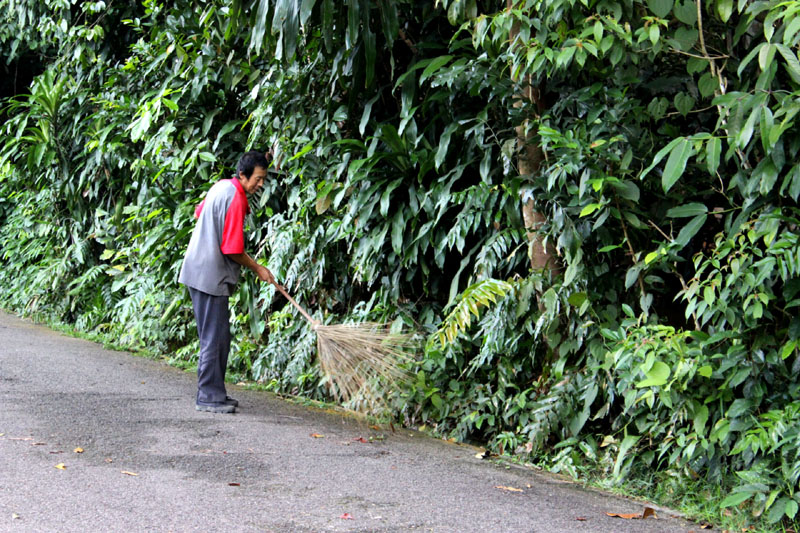 Gardener always remain low and contribute so much effort to maintain the cleanliness of the park.  They are always doing their job without any spotlight flashing on them.  So, when you happen to pass-by them, do mind your step to give them your respect and status they deserved.  They might be as low as grass, as tiny as sand, but they are equal on earth.