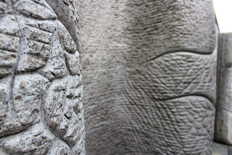 The rough texture of the stones surface signifies the coarseness of the sculptor palm.