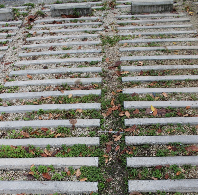 这个停车位是以瘦长的混凝土块以间隔的方式铺设而成。