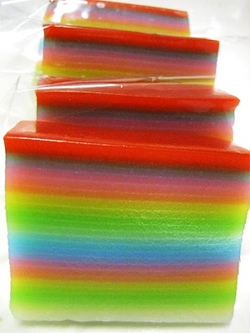 Ingredient are Tapioca, Sago Flour, Mung Bean Flour, Rice Flour, Coconut Milk, Sugar, Water, knotted Pandan leaves and finally the coloring.