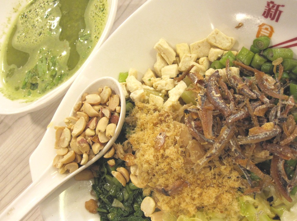 In Singapore, Lei Tea is also known as “Thunder Tea” as the word “Lei” has the same pronunciation as “Thunder” in Chinese language. The dish is served with brown or white rice, tops up with various chopped ingredients like long beans, tofu, peanuts, cabbage, pickled radish and green vegetables. The ingredients can be varies, as for vegetarian Ikan Bilis (anchovies) is optional.