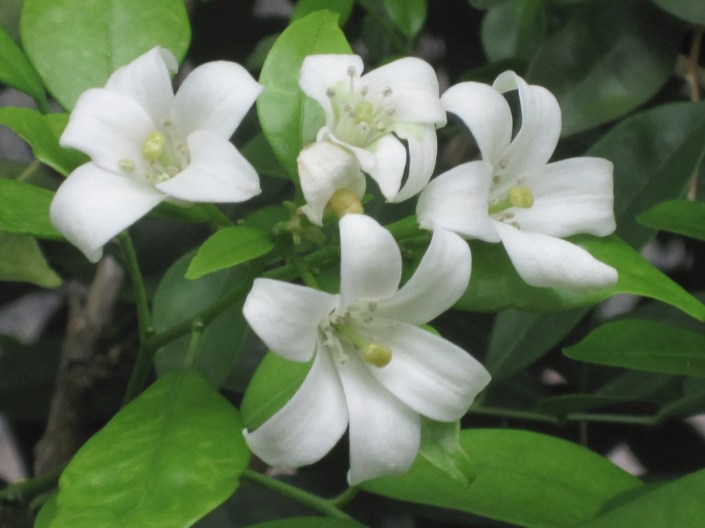 它又是太太在外头采香而来,看着七里香(Murraya)伸展双臂,象似一个小孩要求母亲的拥抱,在太阳温煦的手掌里微笑。