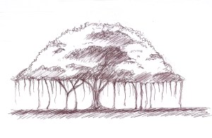 一年的清明节,举家去远处的山坟祭拜祖先。当他们一家大小除草扫坟祭拜到最后焚烧金纸,已经是傍晚5点钟。就在这时候,李老板不其然地望见远处在烟雾朦胧间有一棵巨大的树,他再定眼一看才确定那是一棵榕树。