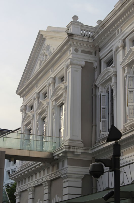 The building is designed in Neo-Georgian style. Built in reinforced concrete and clad in red brickwork with rigid language. The white painted frame casement windows allow it to stand out from the modern cityscape of the Orchard road.