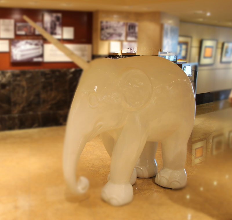 The sculpture “Unielephant” was done by Artist, Philip Treacy; a world-renowned British milliner who made hat to stars and royalty.