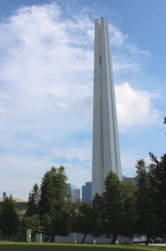 The four vertical of 70 meters high pillars, symbolic the share experience of the Chinese, Malays, Indians and other races.