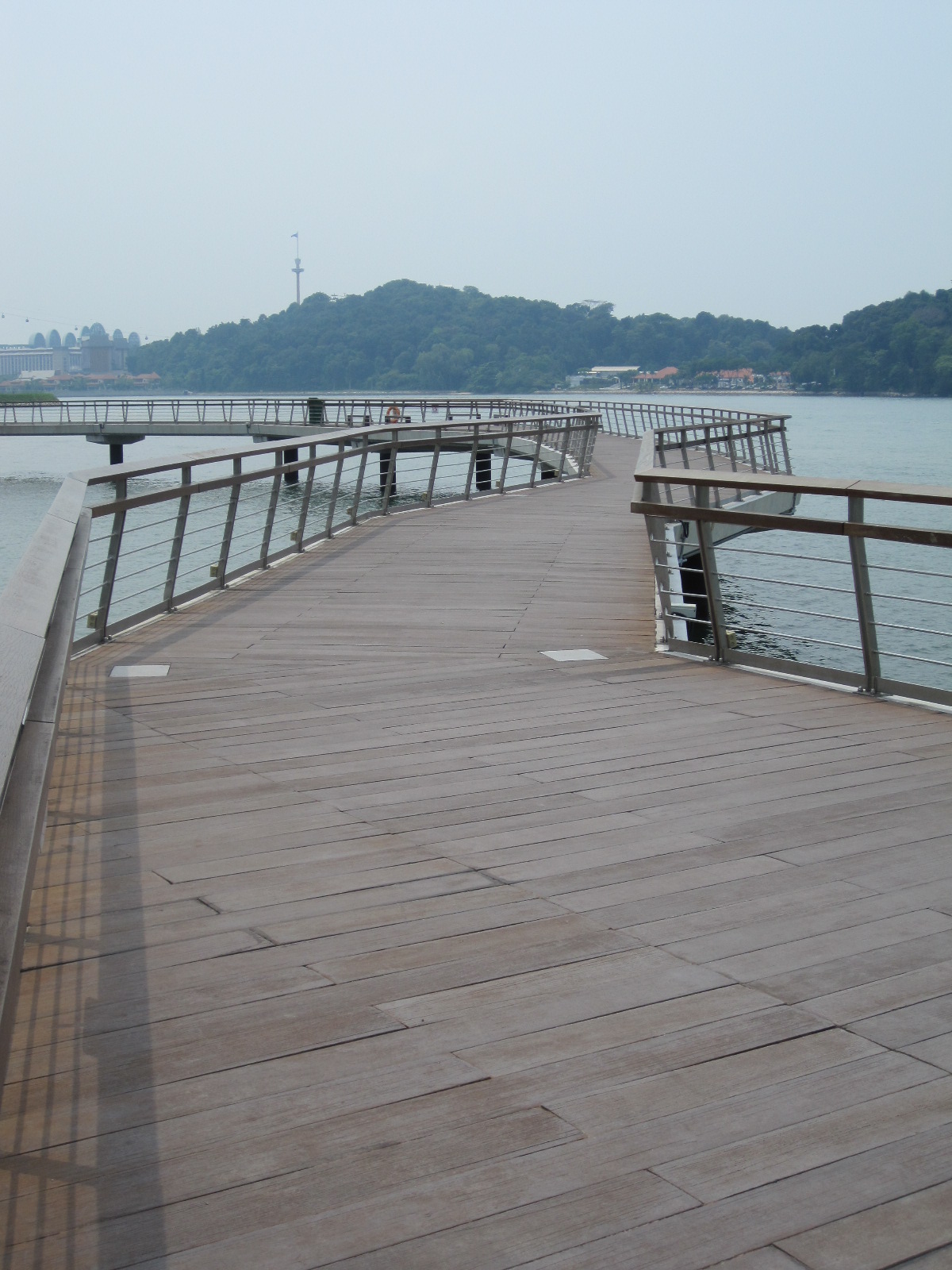 Walking towards the left of the Park, the scene of an inviting island over the other side of the sea greets you with open arm. This is the western side of Sentosa Island, Ford Siloso is lush by the den and greenish forest.