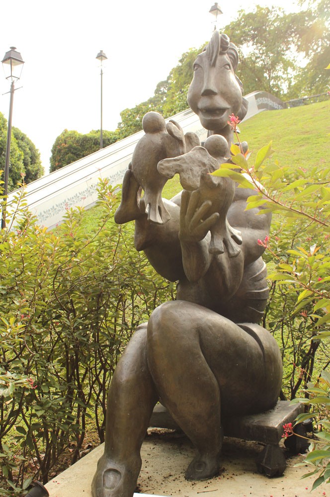 “Let there be peace” sculpture is made of Bronze, created by renowned sculptor Alexandra Nechita in 2005. Dimension in height 3.0m, depth 1.3m, and width 2.1m, located at the left of National Museum of Singapore.