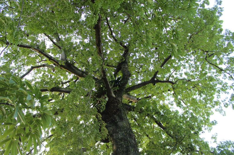 This tall tree is native to tropical America. The broad, straight trunk is the distinctive feature of this old tree.