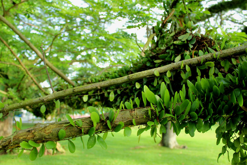 This is one of the Locust tree in Singapore Botanic Gardens, name Hymenaea courbaril. It is a common species in tropical America and used it in furniture, flooring and for decorative purposes.